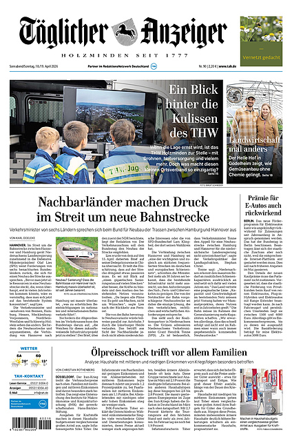 Täglicher Anzeiger Holzminden Samstag 18. April 2026